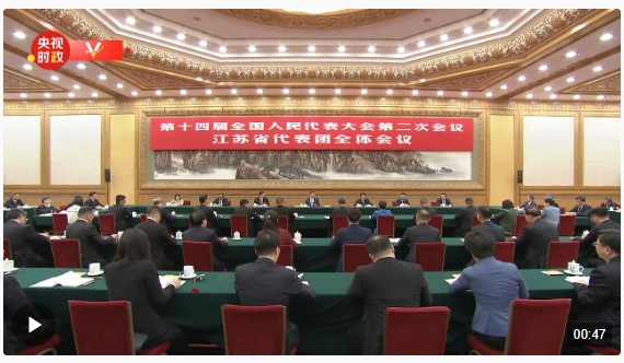 5日下午,中共中央總書記、國家主席、中央軍委主席習近平參加他所在的十四屆全國人大二次會議江蘇代表團審議。