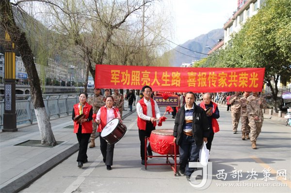 “喜報見證的是軍人至高無上的榮譽,大張旗鼓地開展送喜報活動,決不讓軍人的成績和榮譽只停留在檔案袋里,在更大范圍彰顯‘榮譽感’、擴大‘感召圈’,用實際行動使關(guān)心國防、熱愛國防、建設(shè)國防、保衛(wèi)國防成為全社會的思想共識和自覺行動。”鎮(zhèn)巴縣退役軍人事務(wù)局負責(zé)人鏗鏘有力的發(fā)言贏得了廣大軍民雷鳴般的掌聲。