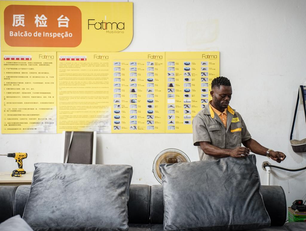 如今,法蒂瑪家具廠的櫥柜、衣柜等產(chǎn)品已占安哥拉國內(nèi)市場四成,沙發(fā)品牌占比也達(dá)四分之一??偨?jīng)理朱炳豐說,家具產(chǎn)業(yè)本地化加快,不僅提升了產(chǎn)品性價比,讓更多老百姓用得起更好的產(chǎn)品,也帶動當(dāng)?shù)毓?yīng)商和加工企業(yè)成長起來。