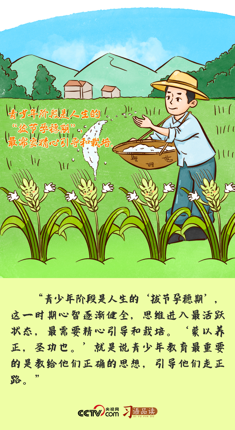 “拔節(jié)孕穗期”是禾谷類作物汲取養(yǎng)分、生長發(fā)育最快的階段,也是決定這一年收成多少的重要時期,需要農(nóng)人精心照料。處在人生“拔節(jié)孕穗期”的青少年階段,也是一個人一生中世界觀、人生觀、價值觀打底塑形的關(guān)鍵時期,正確的引導和悉心栽培至關(guān)重要。