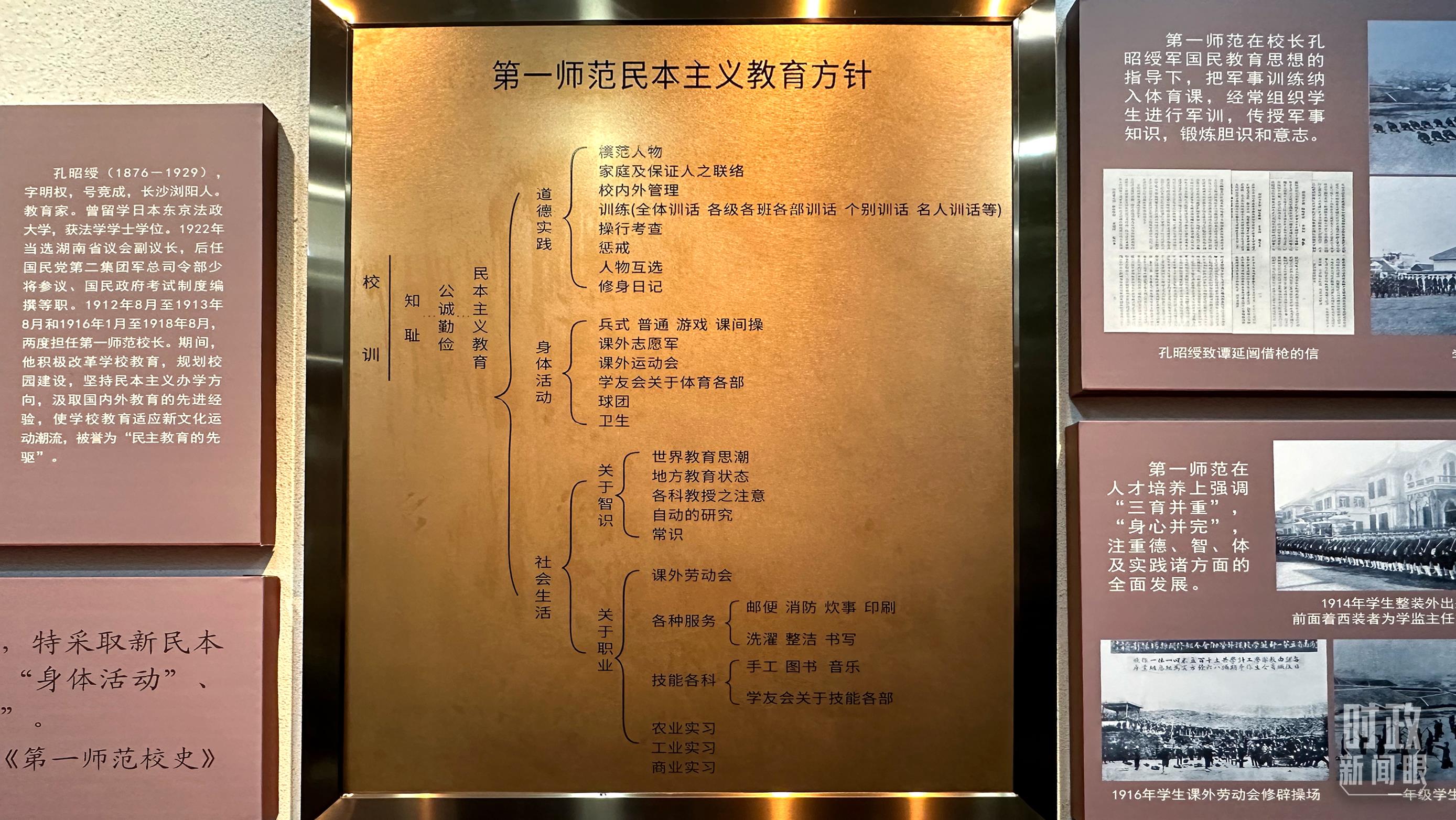 △上世紀(jì)初,湖南第一師范推行的民本主義教育方針,強調(diào)以德為本,三育并重。(總臺央視記者覃思拍攝)
