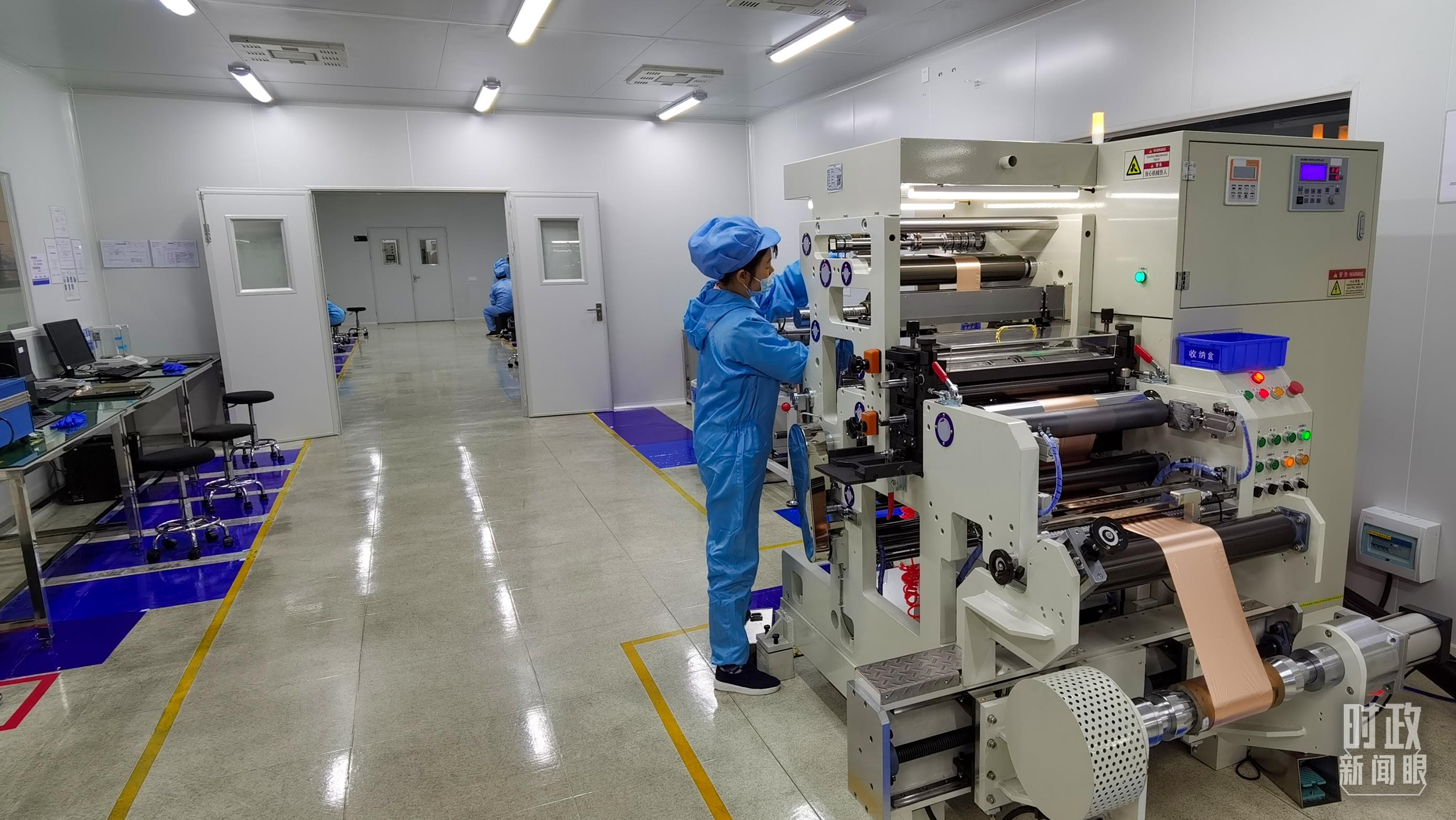 △企業(yè)電池技術(shù)中心內(nèi),員工正在進(jìn)行電池封裝。(總臺央視記者盧心雨拍攝)