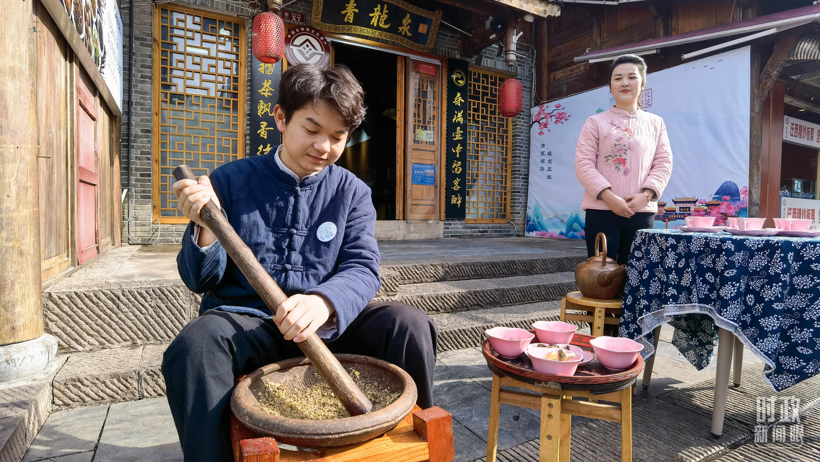△常德河街鴛鴦走馬樓內(nèi)的常德高腔、常德木雕等非遺展示。(總臺央視記者郭鴻、央廣記者潘毅拍攝)