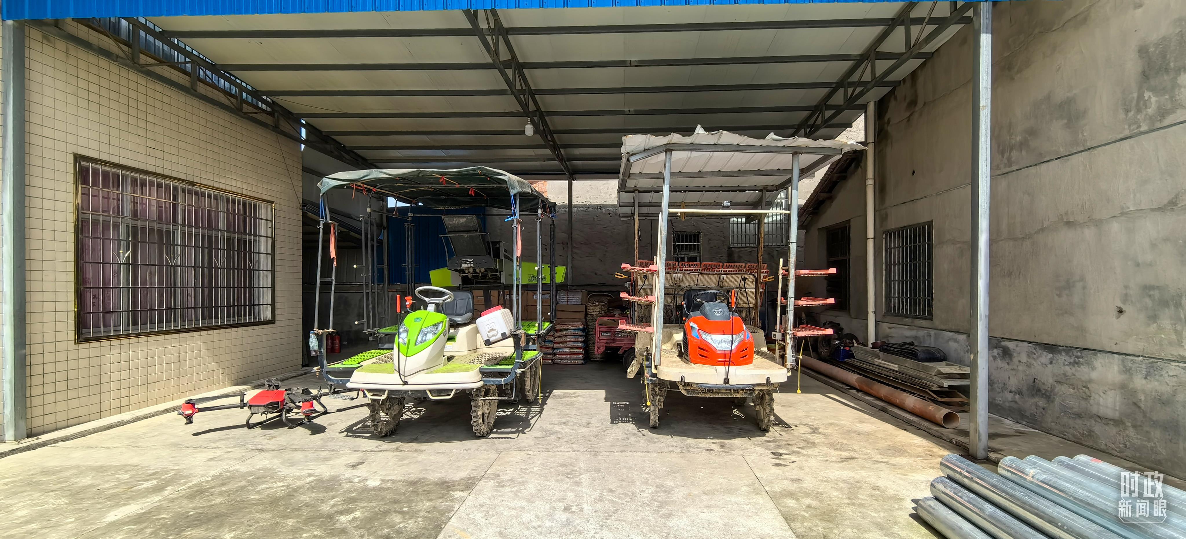 △港中坪村種糧大戶家里的農(nóng)機(jī)具。(總臺央視記者馬超拍攝)
