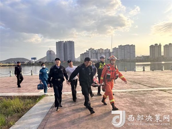 勉縣公安局巡特警大隊聞警即動,火速抵達現場。發(fā)現在河道中心位置有一穿粉色外衣女子在水中掙扎,身體隨波起伏,情勢十分危急。見此情景,民警嚴海芾沒有絲毫猶豫,不顧危險立即攜帶救生圈跳入河中,奮力游向跳河女子開展施救。后交警大隊城區(qū)中隊副隊長潘陽也前來救援,二人不顧危險合力將陷入昏迷的女子托舉出水面,確保不被河水淹沒,努力向岸邊移動,后在應急救援隊救生艇的協助下將該女子救援上岸,立即用擔架將女子送上早已等候的救護車進行搶救治療。目前該女子生命體征平穩(wěn),正在接受進一步治療。(供稿:王淳璞)