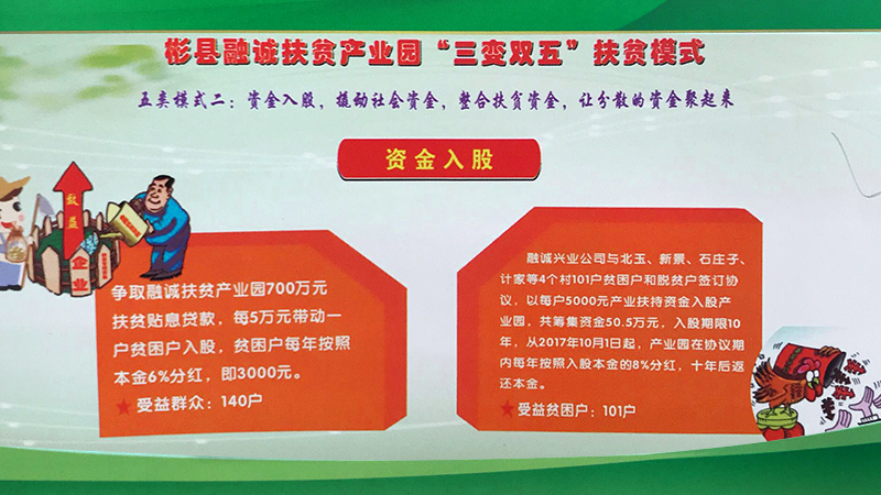 彬州融誠集團公司按照“企業(yè)主導、政府搭臺、群眾參與、社會共建”的思路,圍繞主導產業(yè),緊盯市場需求和脫貧政策動向, 在外出考察學習的基礎上,借鑒貴州省六盤水市“三變”改革的成功經驗,以“資源變資產、資金變股金、農民變股東”三變改革為基礎, 探索總結出了符合融誠實際的“三變雙五”新模式。